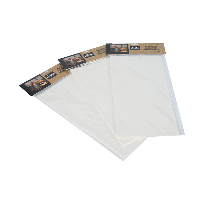 Burgerpapperets icke-sticksegenskaper kan behålla matens utseende, vilket gör att konsumenterna kan känna den ursprungliga smaken på maten när de smakar på den. Det kan också spela en viss roll för att bevara friskhet under förpackningsprocessen, effektivt isolera utomhusluften, bromsa oxidationsprocessen för mat och hjälpa till att förlänga färskheten och smaken hos hamburgare. Den lätta naturen hos Burger Paper gör takeout -hamburgare enklare att bära, och det kan hålla integriteten i måltiderna i uttagningsförpackningen och se till att kunder fortfarande kan uppleva den läckra maten medan de får takeout. Det kan snabba wrap -hamburgare, förbättra prestandan för snabb måltidsoperationer och låta mat snabbt till klienter.